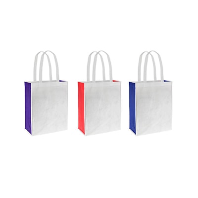 Bolsa reutilizable de tela no tejida (TNT) de 80g/m2. Blanco y color en fuelle