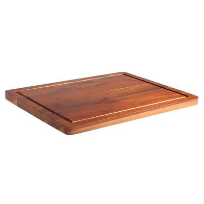Tabla de madera sólida de ACACIA, para cortar y servir carnes y pescados. Ideal también para verduras y/o selección de quesos. Madera trabajada y acabada en máquina, de forma 100% regular, con superficies, laterales y cantos lisos y suaves, para una mayor higiene y comodidad al momento de cortar y servir alimentos. La Acacia, junto con la Teca, es considerada la mejor, más dura y más resistente madera para utilizar para cortes de alimentos – Densidad aprox. 770kg/m3. – Dureza 9.5 (test de Monnin)